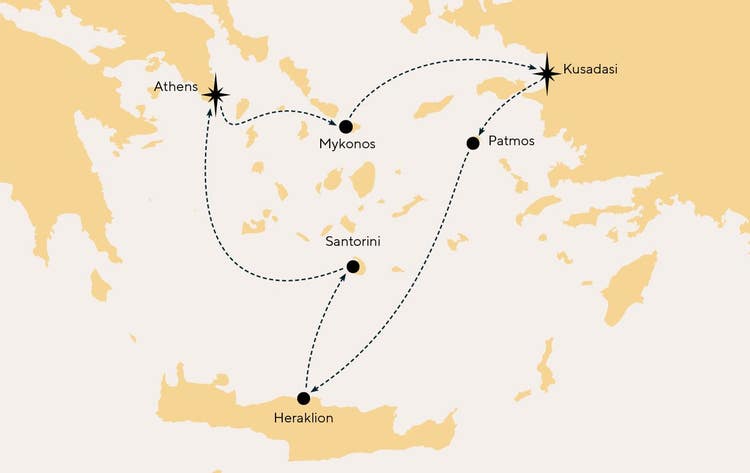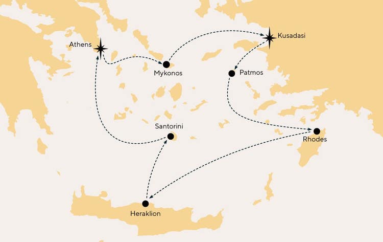 Nuestro maravilloso crucero de 4 noches Egeo Icónico es la oportunidad perfecta para vivir una cautivadora experiencia repleta de historia clásica, auténtica gastronomía, cultura griega e impresionantes paisajes. Desde la fascinante capital de Atenas, nos embarcaremos en un viaje por aguas cristalinas para descubrir una apasionante combinación de lugares únicos, acantilados espectaculares y paisajes ondulantes con todo el romanticismo de las islas griegas. Podrá disfrutar de lugares únicos y maravillosos, como los espectaculares edificios encalados de Santorini, los emblemáticos molinos de viento de Miconos y los majestuosos castillos de Patmos. El precio de su crucero incluye excursiones a la ciudad antigua de Éfeso, en la actual Turquía, y a la impresionante Acrópolis de Lindos y la Ciudadela de los Caballeros.