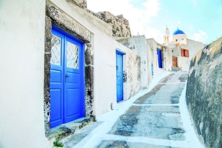 Après Akrotiri, nous nous dirigeons vers Fira, la capitale et plus grande ville de l’île, afin de visiter la cathédrale métropolitaine orthodoxe, ainsi que l’église d’Ypapantis. Elle est réputée pour son élégance et les admirables fresques peintes par l’artiste Christoforos Asimis, né à Santorin.
