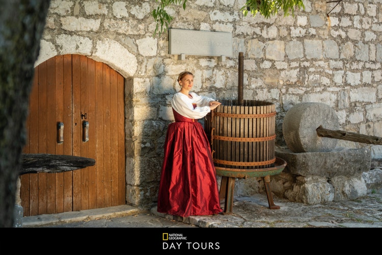 Στη συνέχεια, μπορείτε να γνωρίσετε τα τοπικά έθιμα με έναν σιωπηλό κυκλικό χορό της Δαλματίας, στον οποίο καλείστε να μάθετε τα βήματα και να συμμετάσχετε. Η ξενάγησή σας θα ολοκληρωθεί με ένα ειδικό σεμινάριο αποκλειστικά για ταξιδιώτες της National Geographic, όπου μπορείτε να δημιουργήσετε το δικό σας κόσμημα εμπνευσμένο από τα πολιτιστικά σύμβολα της Poljica – ένα τέλειο ενθύμιο για να πάρετε μαζί σας.