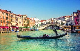 El puente de Rialto, símbolo por excelencia de Venecia, es un lugar de visita obligada para todo viajero. El atractivo histórico y arquitectónico de este puente, el más antiguo de todos los que cruzan el Gran Canal, es innegable. Erigido originalmente en madera y reconstruido en piedra a finales del siglo XVI, incontables visitantes lo atraviesan a diario para descubrir uno de los lugares más hermosos de la ciudad. Disfrute de unas impresionantes vistas del canal con el telón de fondo de los antiguos edificios venecianos. En sus alrededores, un sinfín de tiendas de recuerdos, joyerías y delicias locales reflejan el vivaz espíritu de Venecia. En los puestos del cercano mercado de Rialto encontrará productos frescos y marisco recién pescado.