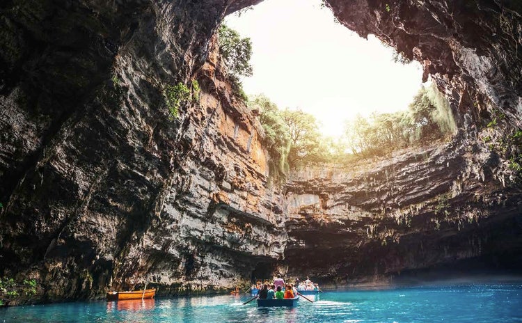 Las prístinas estalactitas y estalagmitas llevan cientos de millones de años formándose en su interior como bella muestra del poder de la naturaleza. La próxima parada es la mágica cueva de las Ninfas, donde se adoraba al dios mitológico Pan; navegaremos por las tranquilas aguas del colorido lago de Melissani a bordo de una barca de remos.