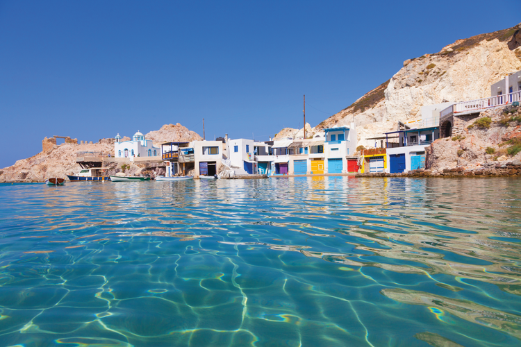 Quizá quiera descubrir una o más de las 70 playas con las que cuenta Milos. Todas ellas son únicas, y presumen de aguas cristalinas o incluso arena multicolor con pequeños guijarros que brillan en la oscuridad. Una de las más cautivadoras es la playa de Sarakiniko, que ofrece una imagen inolvidable: un paisaje lunar costero de alabastro donde el sol baña las aterciopeladas rocas blancas y el mar azul eléctrico.